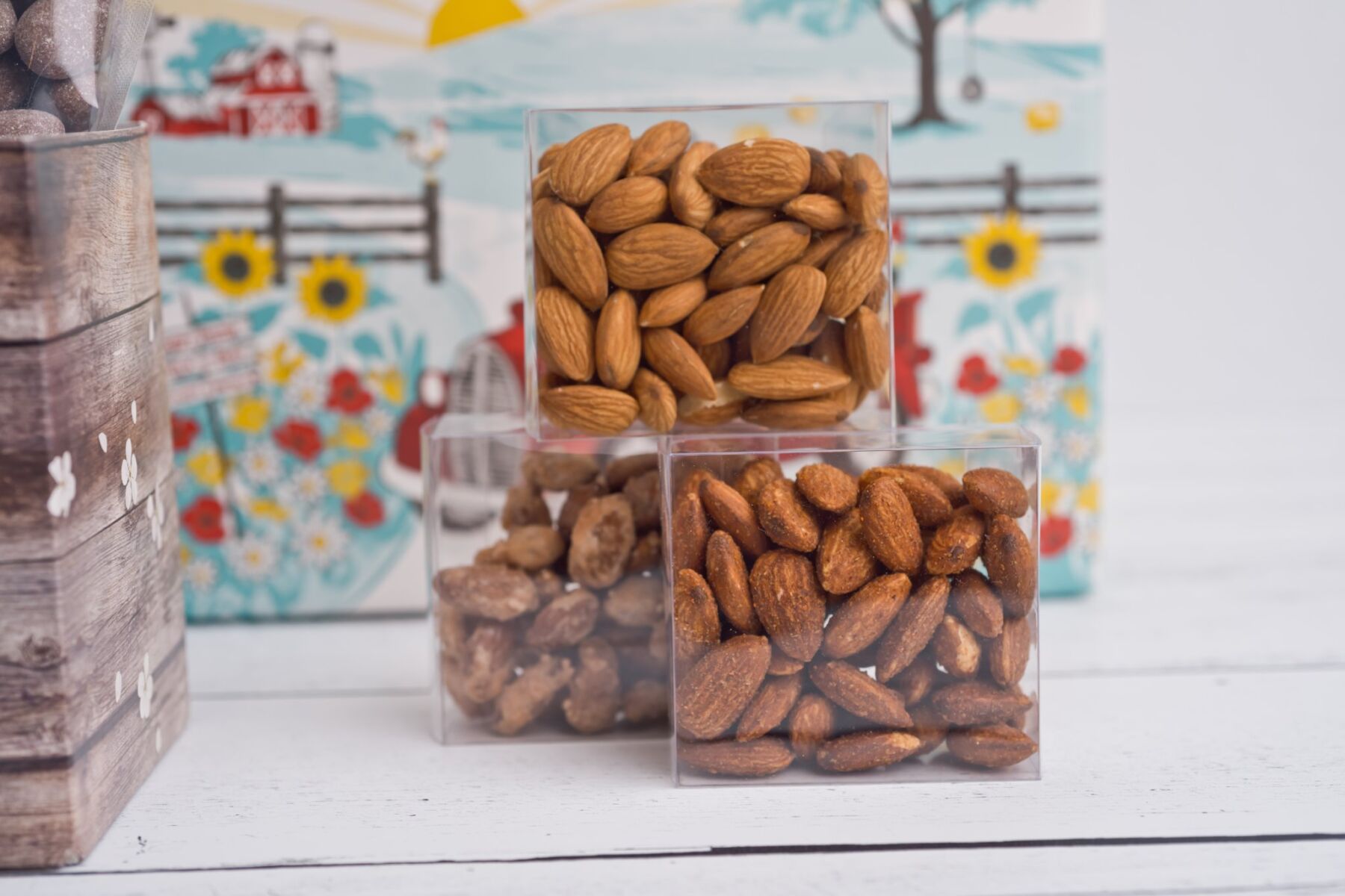 - Whether it’s a wedding, birthday, event, or any other festivity, let your guests indulge in our delicious almonds! We can make your special moments even more extraordinary with custom party favors.